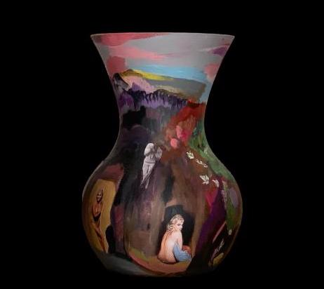 Emulsion and acrylic on OASIS acrylic sweetheart vase 18 X 11cm 2021