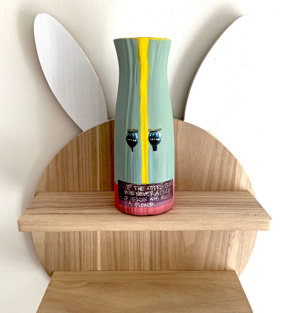 emulsion paint on anticeramic vase 20cm x 6 cm 2021