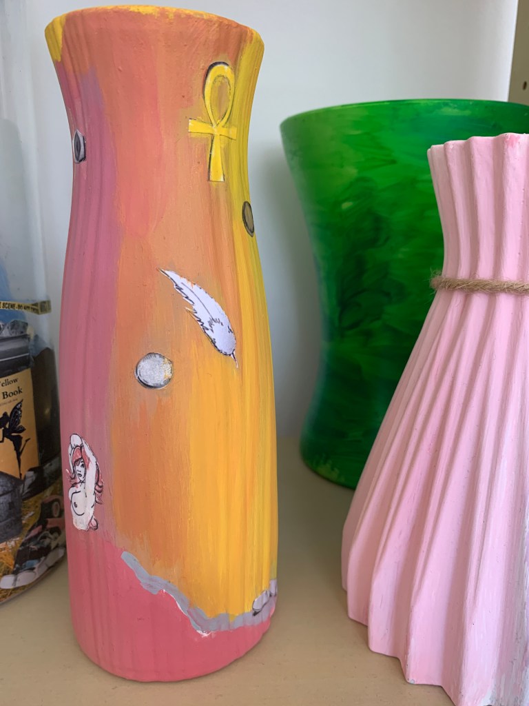 emulsion acrylic and paper on anticeramic vase 20cm X 6cm