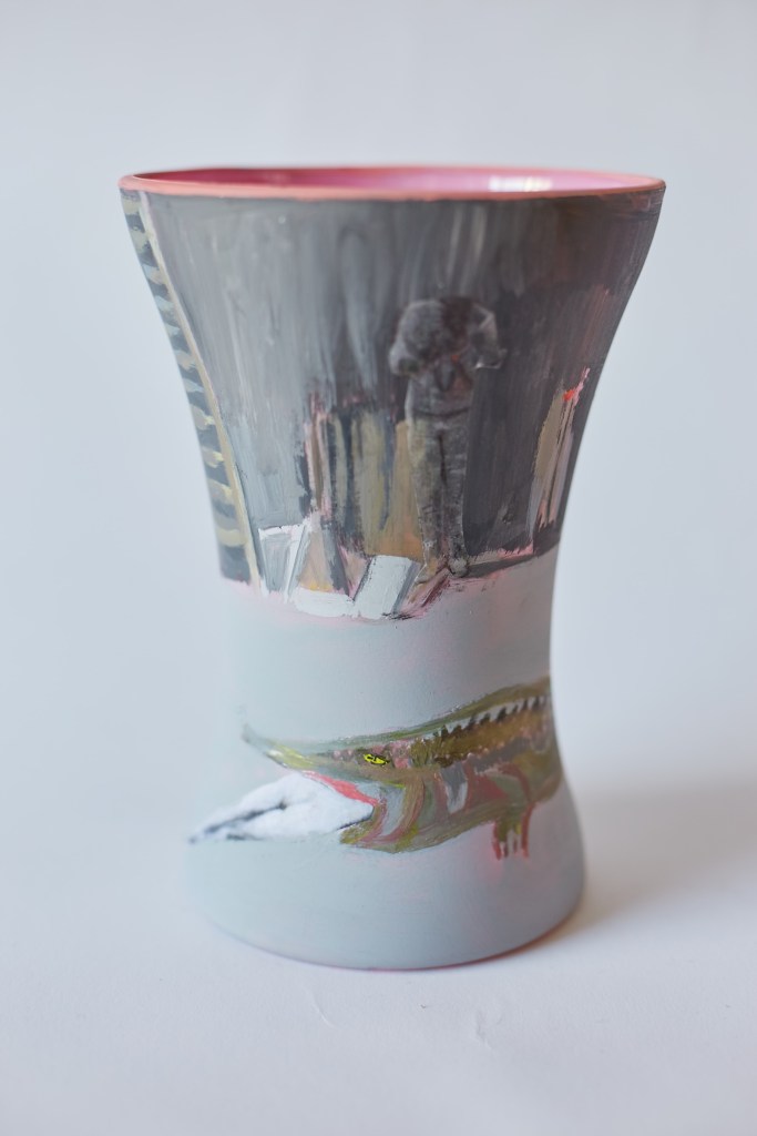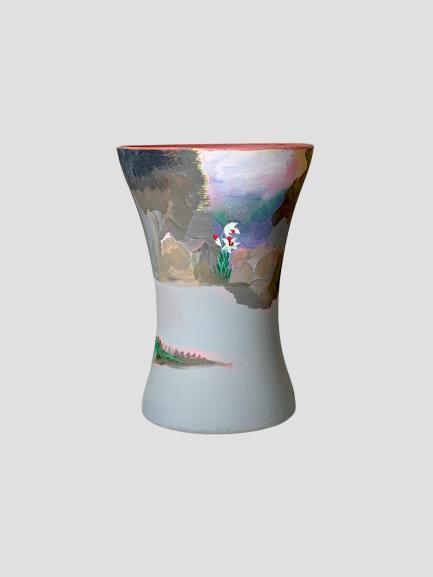Emulsion paint on acrylic hand tied vase 20cm x 11cm
