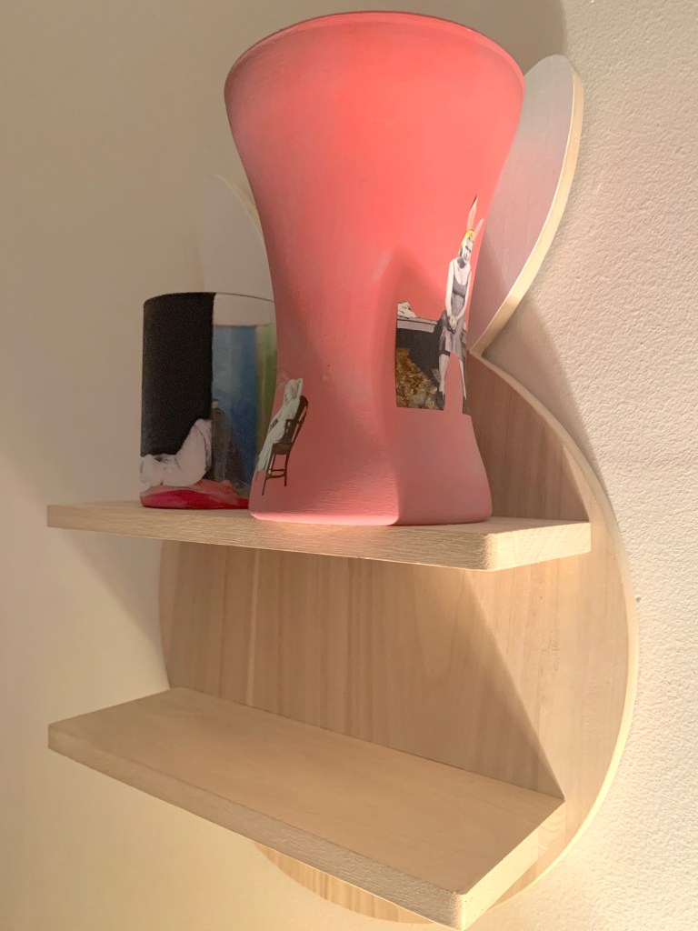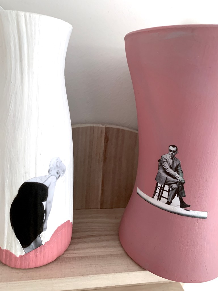Emulsion and paper on hand tied acrylic vase 20cm x 11cm 2021