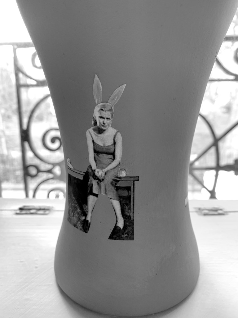 JLG/EVE Emulsion and paper on acrylic hand tied vase 20cm x 11 cm 2021