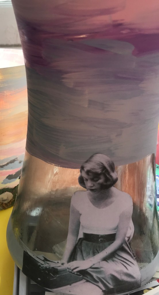 emulsion and acrylic and paper on glass 20cm x 11cm 2021